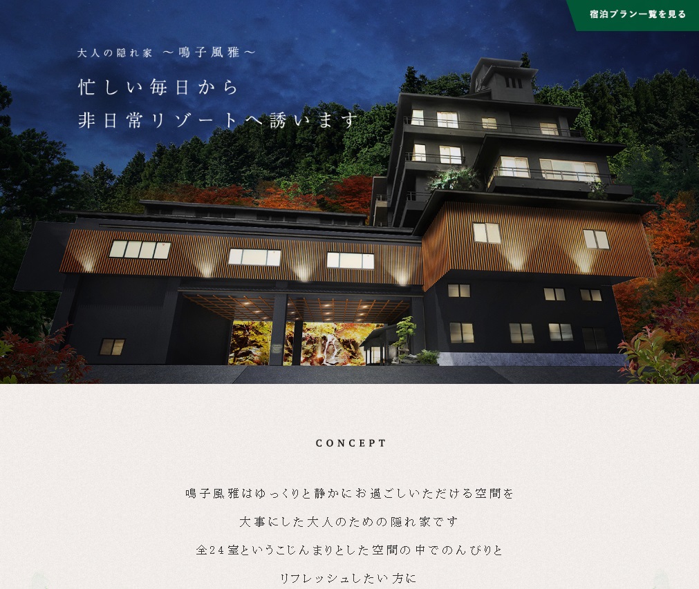 鳴子風雅はゆっくりと静かにお過ごしいただける空間を