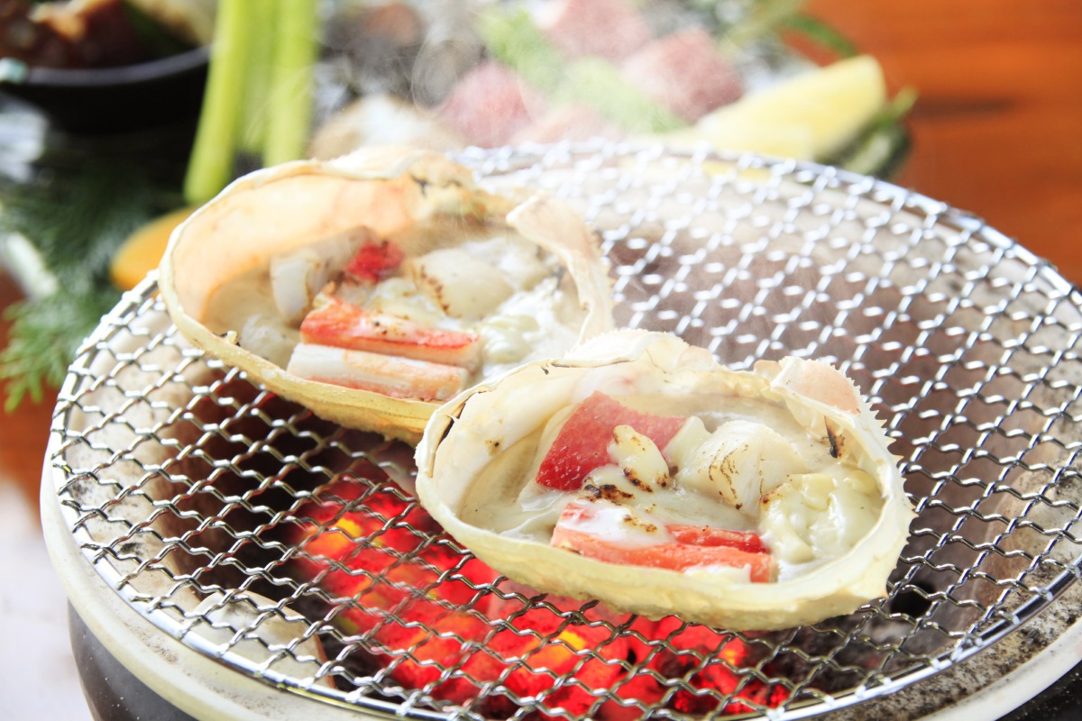 炉皿:ホタテ磯焼、焼蟹、国産牛串焼、銀タラチーズ焼